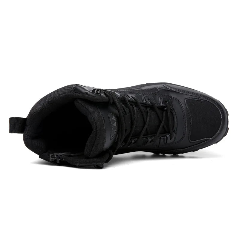 The upper part of the hiking boots is crafted from Tactical Nylon and leather, providing high scratch and abrasion resistance. The gusseted tongue prevents pebbles, sand, dirt, and other debris from entering these hiking boots. With excellent workmanship, the hiking boots are of very high quality and durability.